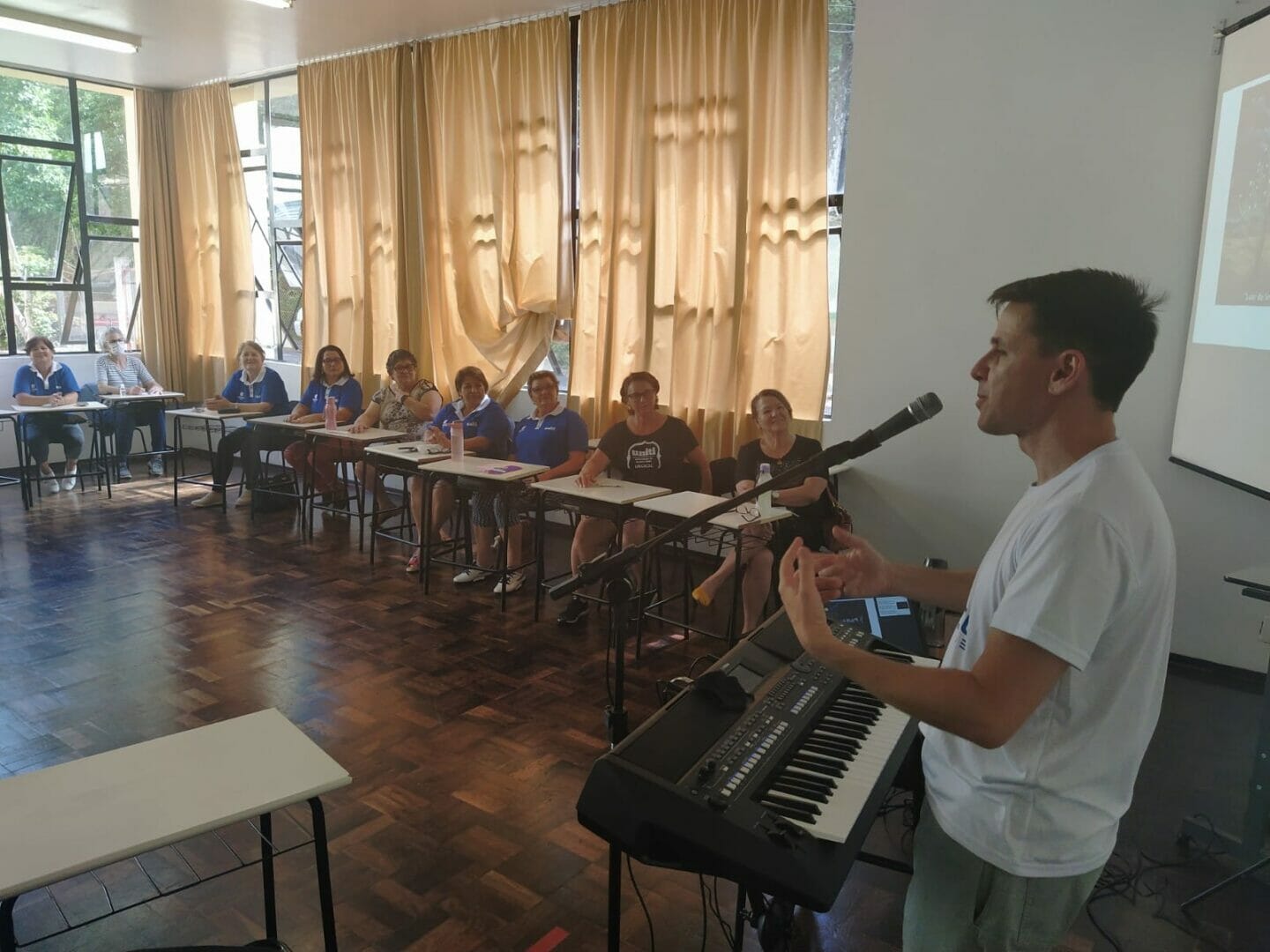 O professor do curso de Música, da Unoesc Capinzal, Luiz Fernando Spessatto, ministrou aula para os acadêmicos da Universidade da Terceira Idade (Uniti) da Unoesc Videira. O encontro foi na tarde desta quarta-feira, 24, como parte do componente Memórias Afetivas a Partir da Música.