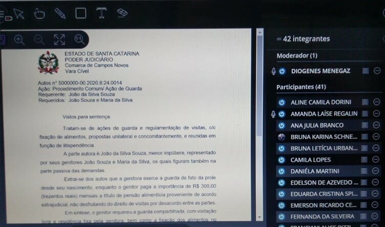 Conforme explica o professor, foram dadas as informações necessárias acerca do perfil do pai e da mãe, e com base nisso, pautado no melhor interesse da criança, discutiu-se a guarda do menor. Assim, dentro de cada Comarca, dois grupos elaboraram petições iniciais, um emitiu Manifestação Ministerial e outro sentença.