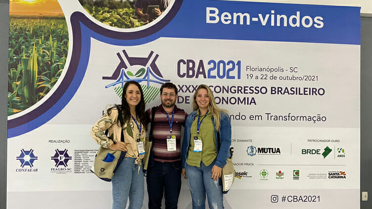 Entre dias os 19 a 22 de outubro, as acadêmicas Lais Andolfatto, Emanueli Cristina Pretto Kuhn e Eloisa Sperotto e o professor Mauricio Vicente Alves, todos do curso de Agronomia, da Unoesc Xanxerê, participaram do Congresso Brasileiro de Agronomia (CBA), realizado no Centro de Convenções de Florianópolis – CentroSul, em Florianópolis-SC.