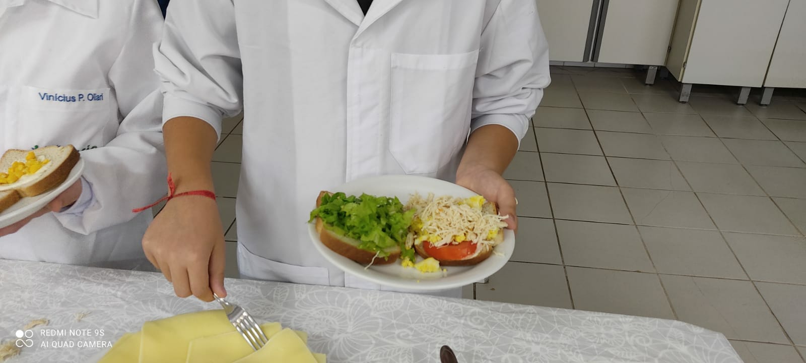 Durante a tarde, a Nutricionista, professora e coordenadora do curso de Nutrição Ana Paula Arioti, auxiliada pelas acadêmicas da 9º fase do curso Luana Prezzotto e Jacqueline Rovea, trabalharam com o grupo de estudantes toda a parte teórica sobre os grupos alimentares. Carboidratos, lipídios, proteínas, vitaminas entre outros, culminando com a preparação um Bufê de sanduiche.