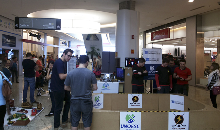 Alguns dos trabalhos desenvolvidos por meio do projeto “Prática pedagógica utilizando a robótica” foram expostos, nos dias 23 e 24 de julho, no Shopping Pátio Chapecó. Na oportunidade, o público pôde visualizar os robôs de competição da equipe OeSC-Spark, assim como jogar na Arena Hockey. A exposição teve a participação dos alunos da Unoesc, acompanhados do Colégio Bom Pastor, já que o projeto é desenvolvido pela universidade em parceria com as escolas.
