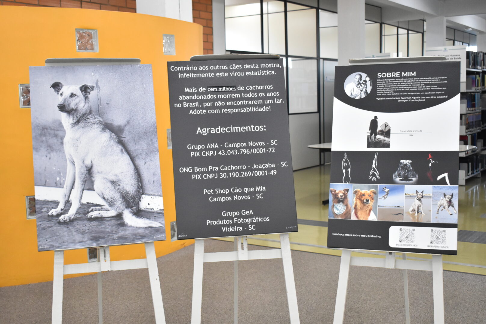 Biblioteca da Unoesc Joaçaba recebe exposição fotográfica que retrata o abandono de cães