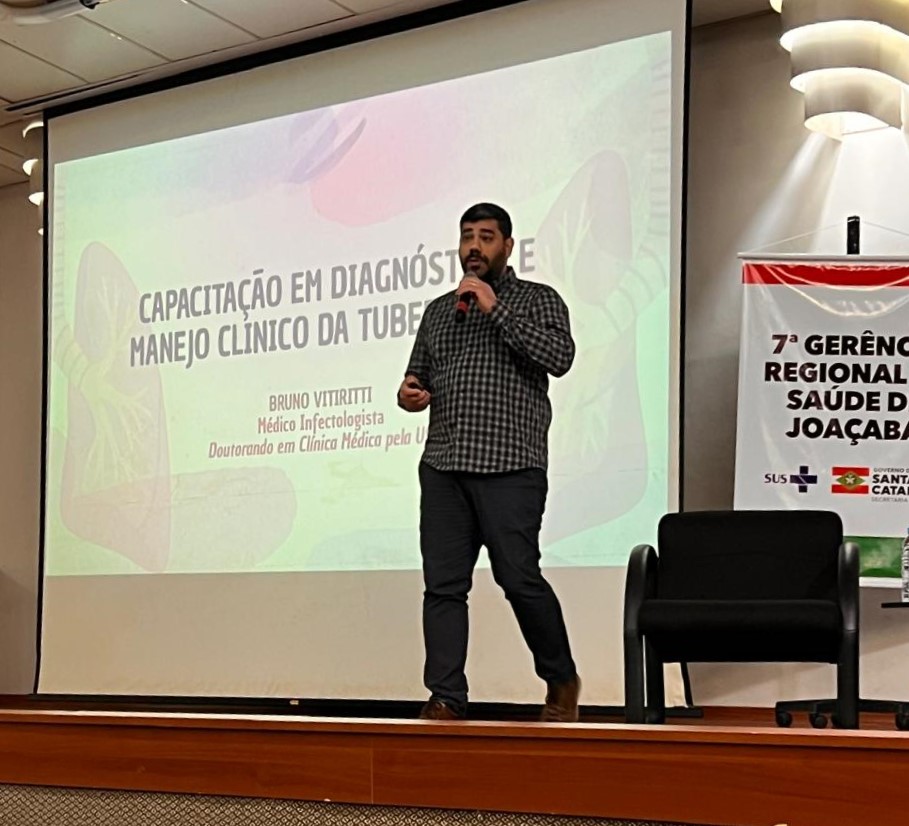 A programação reuniu dados epidemiológicos da tuberculose na Regional de Joaçaba, atualização sobre exames laboratoriais e tecnologias de diagnóstico, orientações sobre esquemas de tratamento e recomendações vigentes no estado e no país. Também tratou das estratégias adotadas em Santa Catarina para o controle da doença, da identificação de casos suspeitos e investigação de contatos, além do manejo na pediatria, destacando critérios diagnósticos e cuidados necessários.