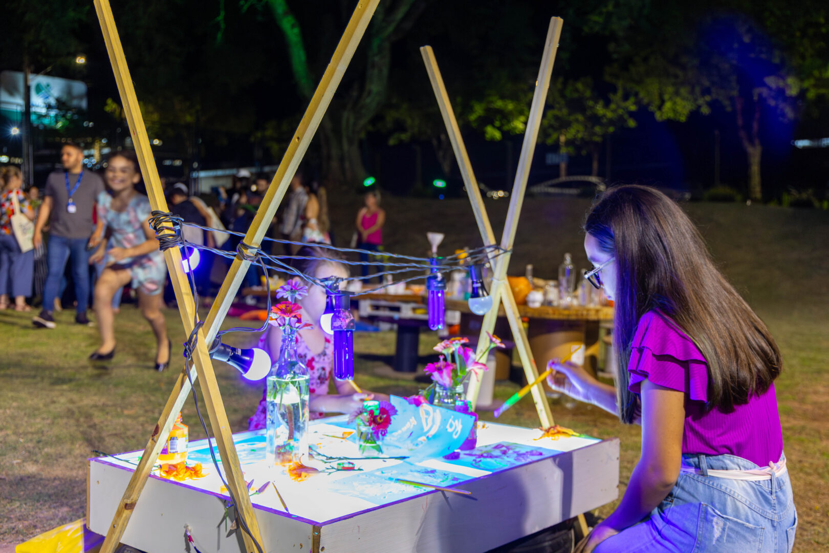 Enquanto os pais participaram das orientações sobre uniforme, material didático, calendário escolar e opções de contraturno, os estudantes viveram uma noite de atividades especiais. A equipe pedagógica organizou oficinas práticas como plantio de flores com placas personalizadas da família, pintura neon, fogueira com marshmallows, produção de massinha de modelar e uma “poção mágica”. A oficina de dança, que integrará o contraturno em 2025, também foi apresentada, proporcionando um momento lúdico e criativo para os pequenos e seus familiares.