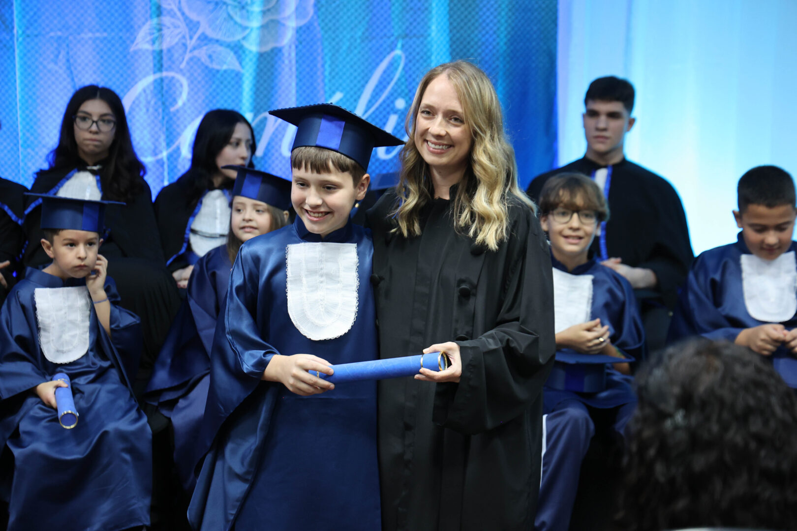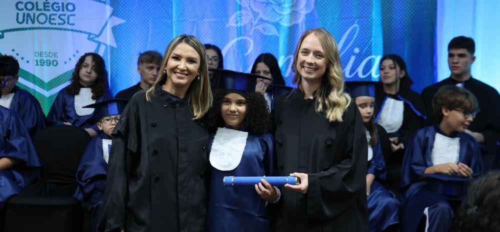 O evento celebrou a formatura dos estudantes da Educação Infantil (Pré II) e do Ensino Fundamental, 5º ano e 9º ano. A cerimônia foi conduzida pelos dirigentes da Unoesc: diretor de Ensino e do Colégio Unoesc Chapecó, professor Celso Paulo Costa, coordenadora pedagógica do Colégio, professora Simone Machado Carvalho, professora regente da turma do Pré II, Daiane da Rocha Figueiredo, professora regente da turma do 5º ano, Júlia Schlemer Spaniol Maragno, e professor regente da turma do 9º ano, Rafael Paviani.