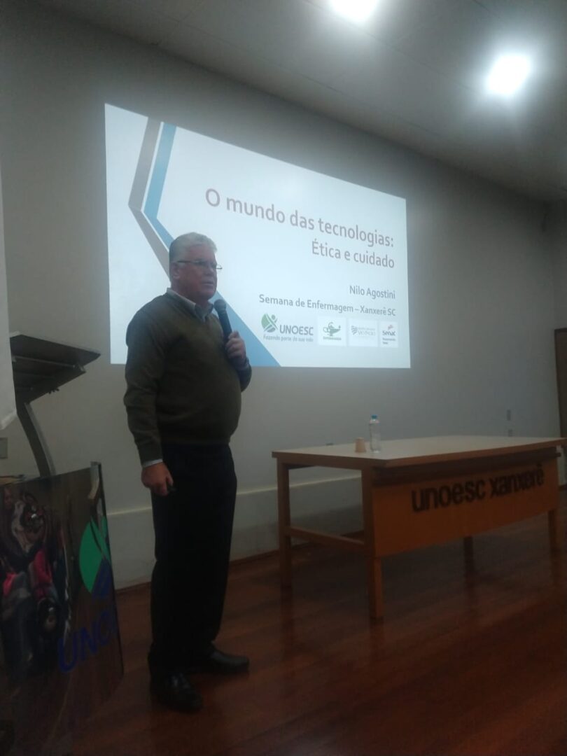 Para contribuir com essa discussão, o curso de Enfermagem da Unoesc Xanxerê realizou, no período de 13 a 16 de maio, a “1ª Semana Integrada de Enfermagem” em parceria com o Hospital Regional São Paulo (HRSP) e o Serviço Nacional de Aprendizagem do Comércio de Santa Catarina (Senac/SC), com o tema “Tecnologia, ética e cuidado: promovendo a qualidade na prática assistencial de Enfermagem”.