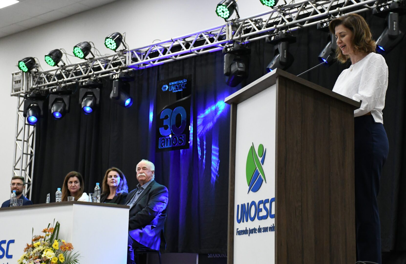A coordenadora administrativa da Unoesc Campos Novos, professora Juliane Brogliato, enfatizou que a celebração dos 30 anos é uma conquista coletiva, agradecendo a todos que contribuíram para que o curso de Administração se consolidasse como uma referência na região.