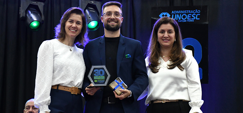 O curso também foi homenageado pelo Conselho Regional de Administração de Santa Catarina (CRA-SC), por meio do representante Emerson Cardoso Marques, que entregou uma placa em reconhecimento ao trabalho realizado ao longo dos 30 anos de história.