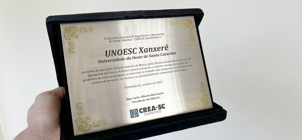 Curso de Agronomia da Unoesc Xanxerê recebe homenagem do CREA-SC pelos 20 anos de implantação