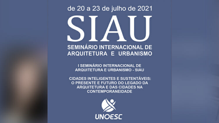 O evento denominado I Seminário Internacional de Arquitetura e Urbanismo (SIAU), com o tema “Cidades inteligentes e sustentáveis: o presente e futuro do legado da arquitetura e das cidades na contemporaneidade”, será gratuito, aberto ao público, totalmente on-line e com certificação.