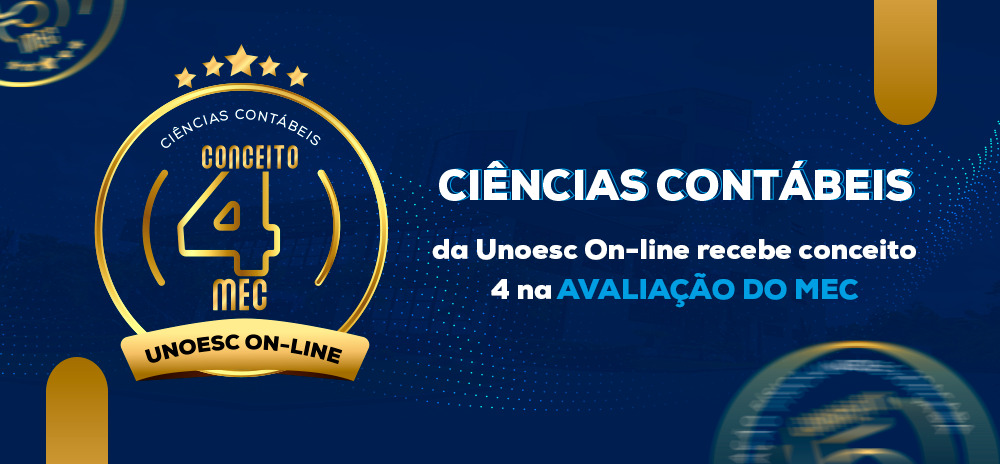 Mais um curso na modalidade a distância da Unoesc foi bem avaliado pelo Ministério da Educação (MEC). A Graduação em Ciências Contábeis recebeu conceito 4, em uma escala que vai de 1 a 5, e está entre as melhores do país.
