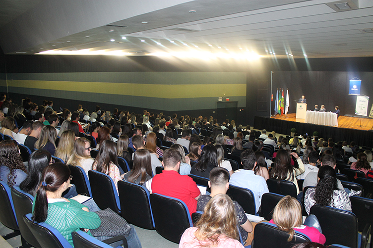 Durante a cerimônia de abertura, o juiz do trabalho da comarca de Videira, professor Luiz Osmar Franchin, que há 25 anos atua no curso de Direito enalteceu o trabalho da Universidade e dos demais colegas para manter o curso com grande procura e aceitação.