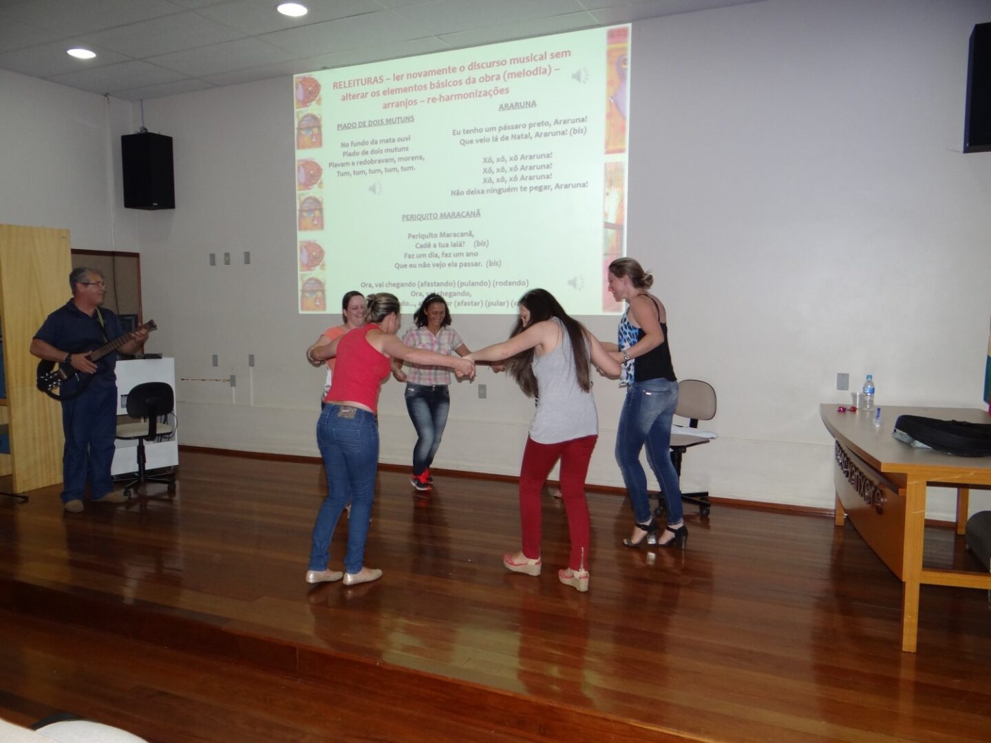 — O professor demonstrou que podemos pensar a música como um espaço onde é possível melhorar a acuidade auditiva do aluno, aprimorar a coordenação viso-motora, o raciocínio, a memória e as expressões corporal e oral. O evento possibilitou que os participantes tivessem um momento de leveza em sua formação pessoal e profissional — analisa.