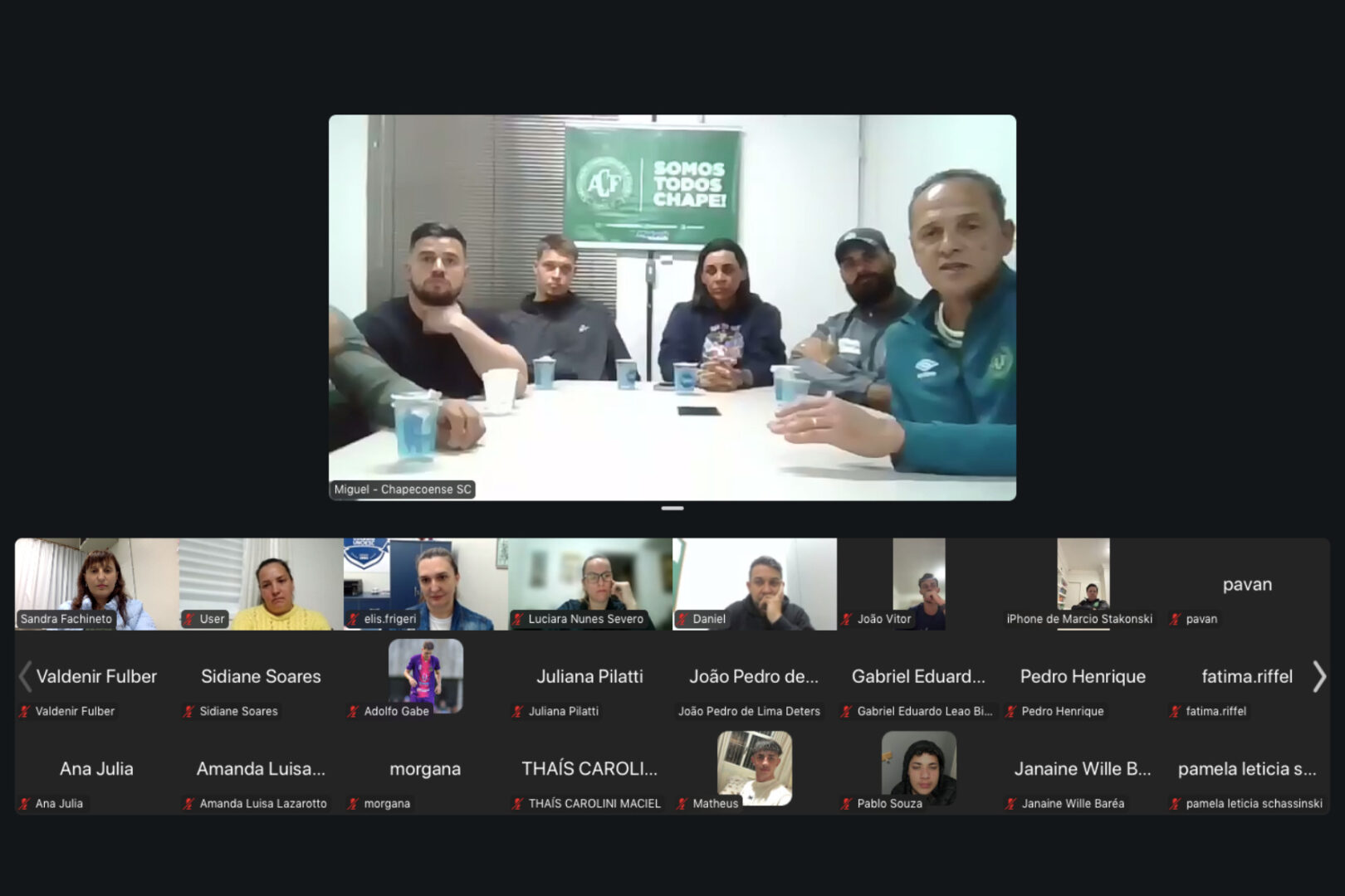 Participaram da conversa profissionais que integram a comissão técnica da categoria sub-20 da Chapecoense, entre eles: Márcio Stakonski (Diretor de Futebol); Paulo Pagliari (vice-presidente das Categorias de Base); Miguel Ferreira (coordenador técnico); Cesar Augusto (preparador de goleiros); Lucas Giovanni (preparador físico e auxiliar técnico) e Renan Calipsto (preparador físico). O atleta Luciano Ludwig, que cursa Educação Física, também compartilhou sua experiência.