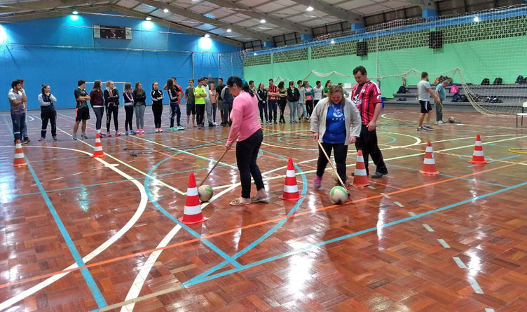 Os acadêmicos do curso de Educação Física da Unoesc participaram, neste mês, de atividades adaptadas que podem ser aplicadas para alunos com necessidades educacionais. Segundo o professor do componente curricular de Educação Física Adaptada, Valdeci Dassoler, a atividade ocorre todos os anos.