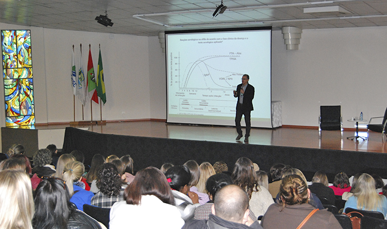 Aproveitando a ocasião, professores do curso apresentaram o projeto de estudo que está sendo desenvolvido, abordando a incidência da sífilis na região de Joaçaba nos últimos 10 anos.