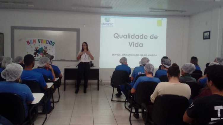 Fazendo parte da programação da 17ª Semana Interna de Prevenção de Acidentes no Trabalho – SIPAT, da empresa Rafitec Soluções em Embalagens do município de Xaxim, a professora Mariane Carolina de Almeida e a acadêmica Fabiane Cristina Lamp, do curso de Engenharia Ambiental e Sanitária da Funoesc / Facisa Xaxim, realizaram uma palestra sobre “Qualidade de Vida”.