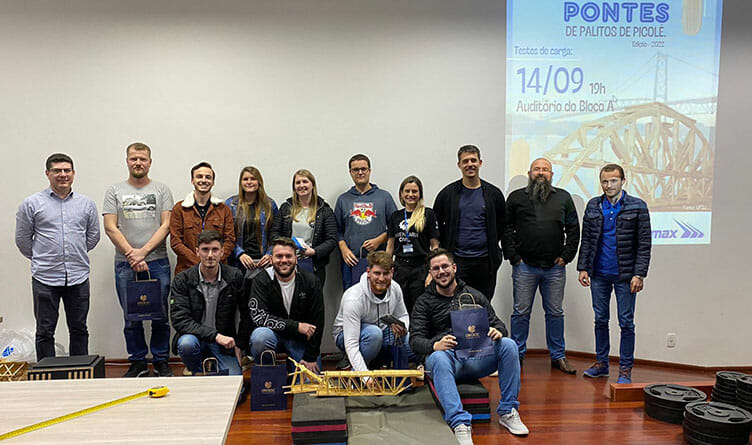 As pontes de palitos de picolé, construídas pelas equipes, foram, posteriormente, rompidas e avaliadas de acordo com três critérios: carga de ruptura, economia de material e estética. As equipes classificadas em primeiro, segundo e terceiro lugares receberam premiações da Unoesc e da Terramax Obras – empresa parceira do curso na realização de diferentes ações de ensino e aprendizagem.