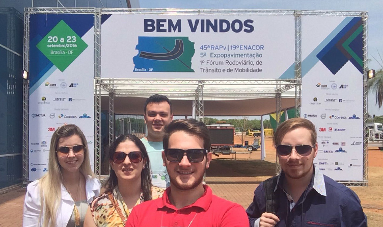 Quatro estudantes do curso de Engenharia Civil da Unoesc Joaçaba, juntamente com a professora Gislaine Luvizão, participaram da 45ª Reunião Anual de Pavimentação, 19º Encontro Nacional de Conservação Rodoviária, 5ª ExpoPavimentação e 1º Fórum Rodoviário, de Trânsito e de Mobilidade. Os eventos ocorreram entre os dias 20 e 23 de setembro, em Brasília.
