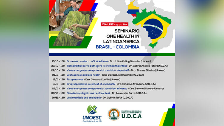 Os cursos de Medicina Veterinária da Unoesc Xanxerê e da Universidade de Ciências Aplicadas e Ambientais – U.D.C.A, da Colômbia, realizaram em conjunto o Seminário One Health in Latinoamerica.