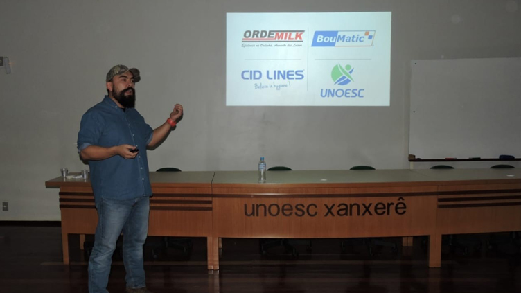Integrando a 9ª Jornada de Ruminantes, o curso de Medicina Veterinária da Unoesc Xanxerê, em parceria com as empresas Ordemilk e MSD Saúde Animal, realizou na quarta-feira (5) um ciclo de palestras sobre produção leiteira.