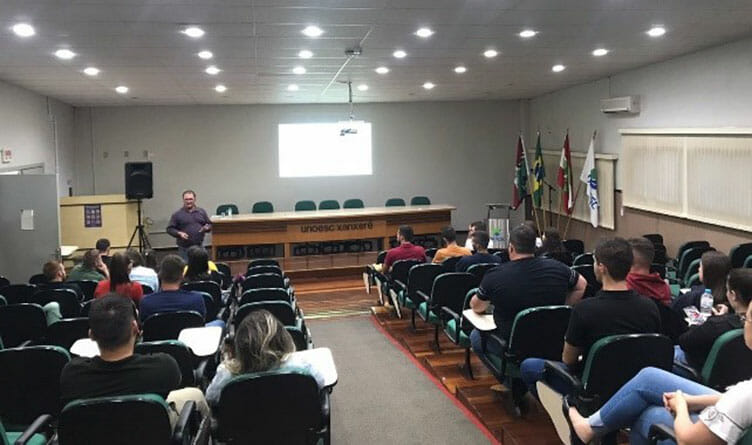 O evento aconteceu no auditório do campus II da Unoesc Xanxerê, de forma presencial, e contou com público expressivo de alunos e profissionais da área.