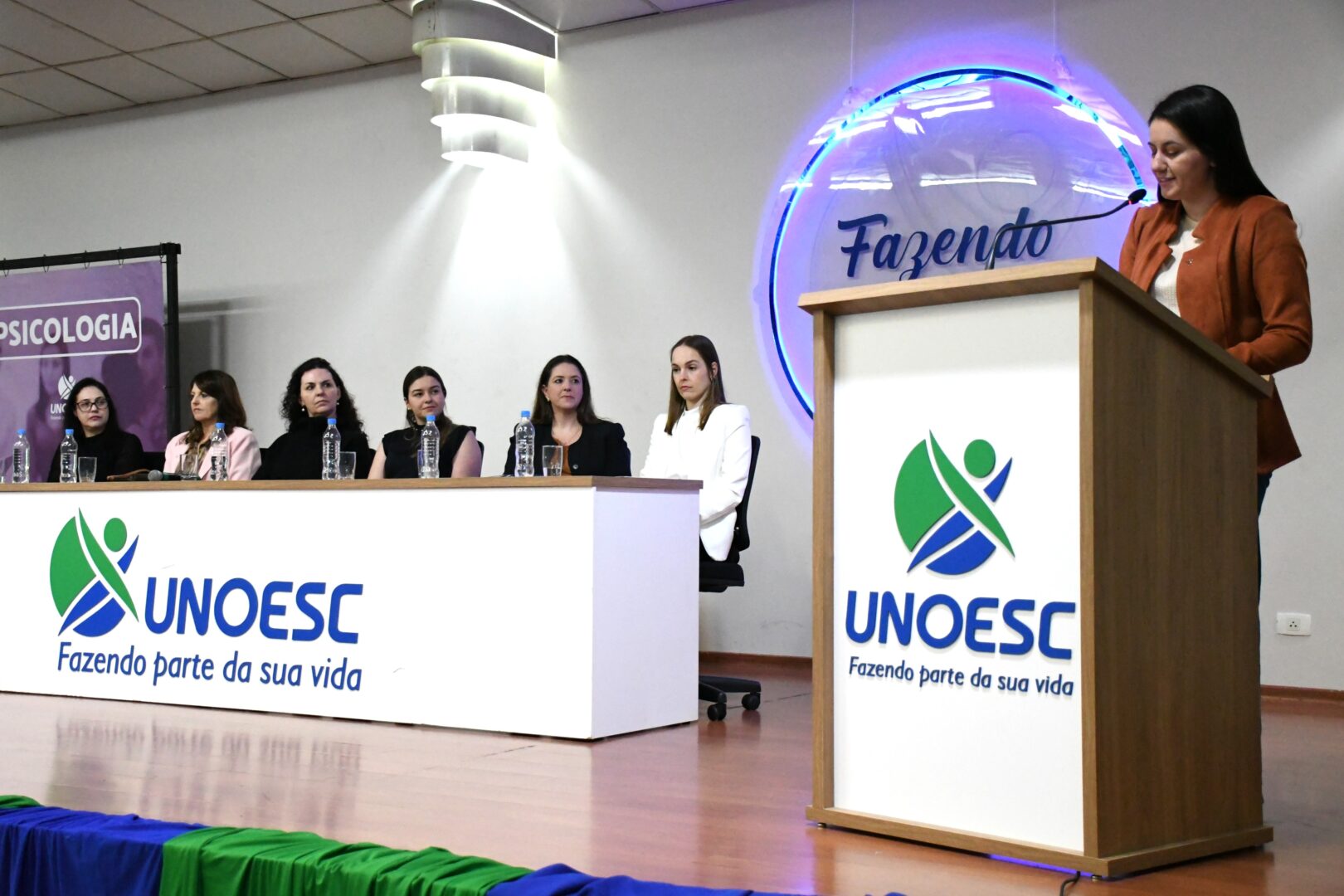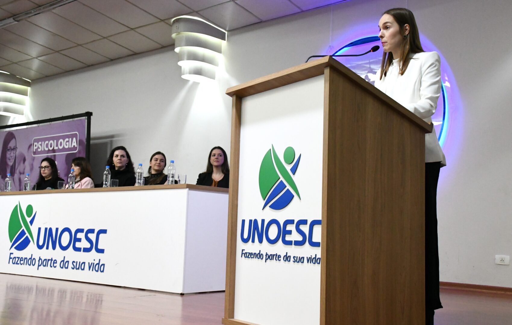 O curso de Psicologia da Unoesc Joaçaba promoveu, na noite de quarta-feira (10), no Auditório Afonso Dresch, a “1ª Cerimônia do Botton”. O evento, que enalteceu o compromisso com a ética, a responsabilidade na atuação profissional e o cuidado com a vida humana, contou com a presença de dirigentes, coordenadores, professores, familiares e amigos.