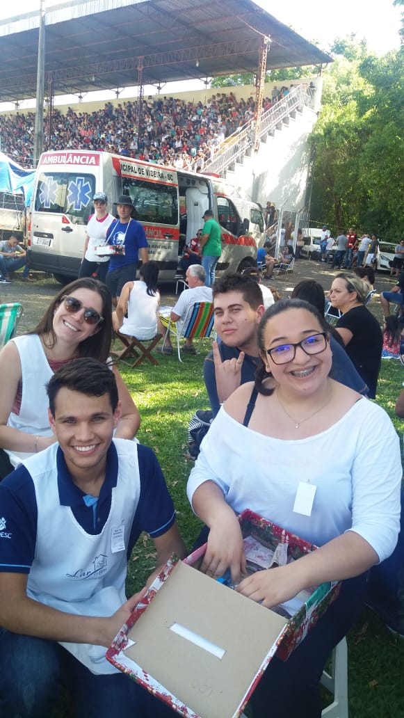 Já no dia 11 de novembro, os acadêmicos do curso também participaram como voluntários na venda de pastéis para o lar O Bom Samaritano durante a realização do Bingão da Visão, promovido pelo Lions Clube Videira no estádio Luiz Leoni em Videira.