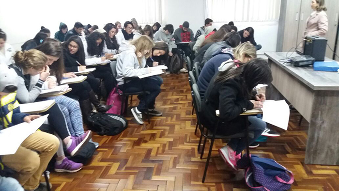 A primeira unidade de ensino a ser atendida pelo programa foi a Escola de Educação Básica Adelina Régis (Cepar), oportunidade em que participaram cerca de 120 alunos do terceiro ano do Ensino Médio, cuja parceria foi firmada recentemente durante visita da coordenação do curso ao diretor do educandário, professor Roberto Maraschin Primo.