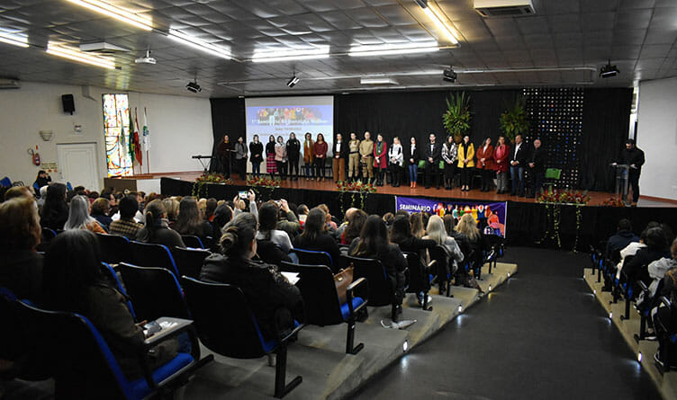 De forma alusiva ao “Agosto Lilás”, campanha de conscientização pelo fim da violência contra a mulher, a Unoesc sediou, no Auditório Afonso Dresch, na quinta-feira (18), o “Seminário Regional da Mulher”. O evento promovido e apoiado pelos Conselhos Municipais dos Direitos da Mulher (Comdims) das cidades de Joaçaba, Herval d’Oeste e Luzerna, bem como suas respectivas Prefeituras, Rede Catarina, Ministério Público, Associação dos Municípios do Meio-Oeste Catarinense (AMMOC), Câmara de Dirigientes Lojistas (CDL), OAB para Elas, Unoesc, Secretarias de Saúde e Centros de Assistência Social (CRAS e CREAS), teve como objetivo tratar das questões relacionadas à saúde e proteção das mulheres.