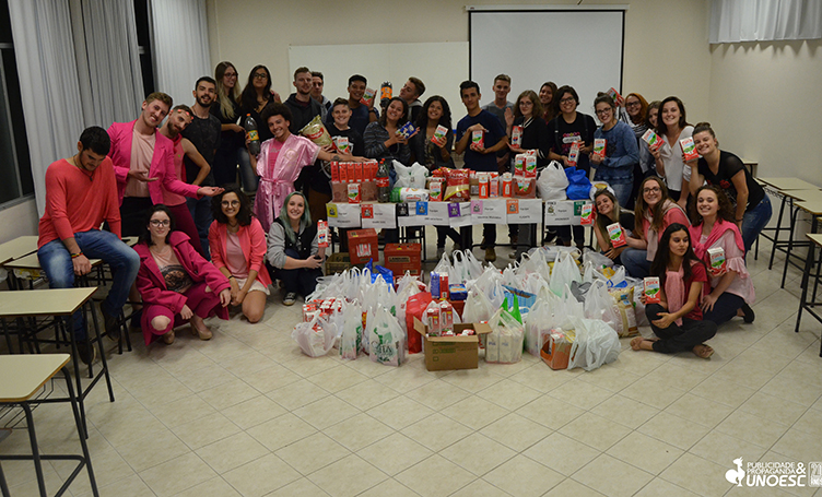 O curso de Publicidade e Propaganda da Unoesc Joaçaba realizou uma doação de 169 kg de alimentos e 339 litros de leite ao Centro de Referência de Assistência Social (CRAS) de Joaçaba, na tarde de quinta-feira (5).