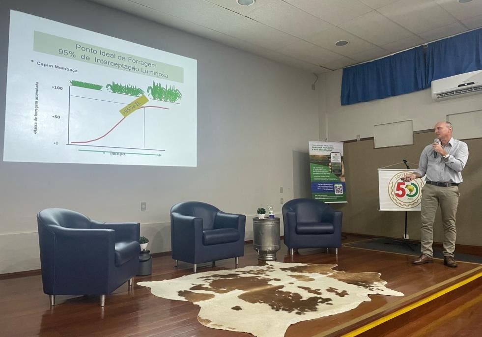 A atividade contou com duas palestras. Na primeira, o engenheiro agrônomo Leandro Simioni, do Serviço Nacional de Aprendizagem Rural de Santa Catarina (Senar/SC), apresentou estratégias para maximizar a produção de leite em sistemas a pasto com suplementação, enfatizando a importância de tratar o pasto como uma cultura de alto retorno econômico, exigindo adubação e manejo adequados.