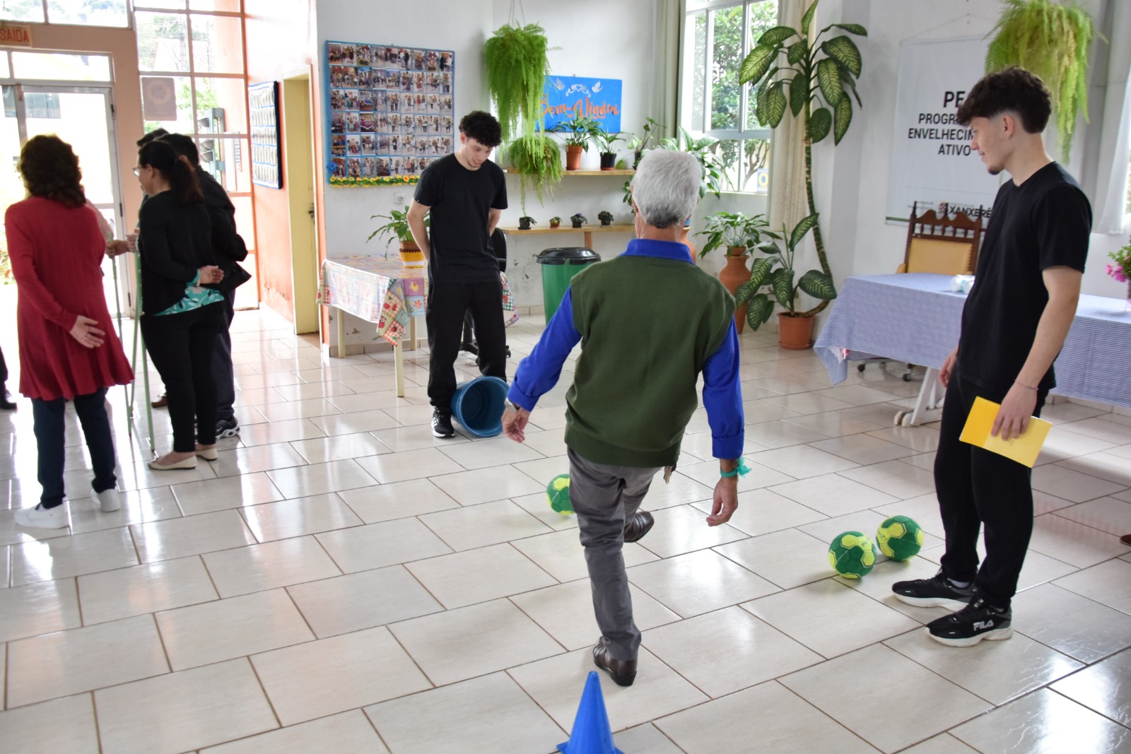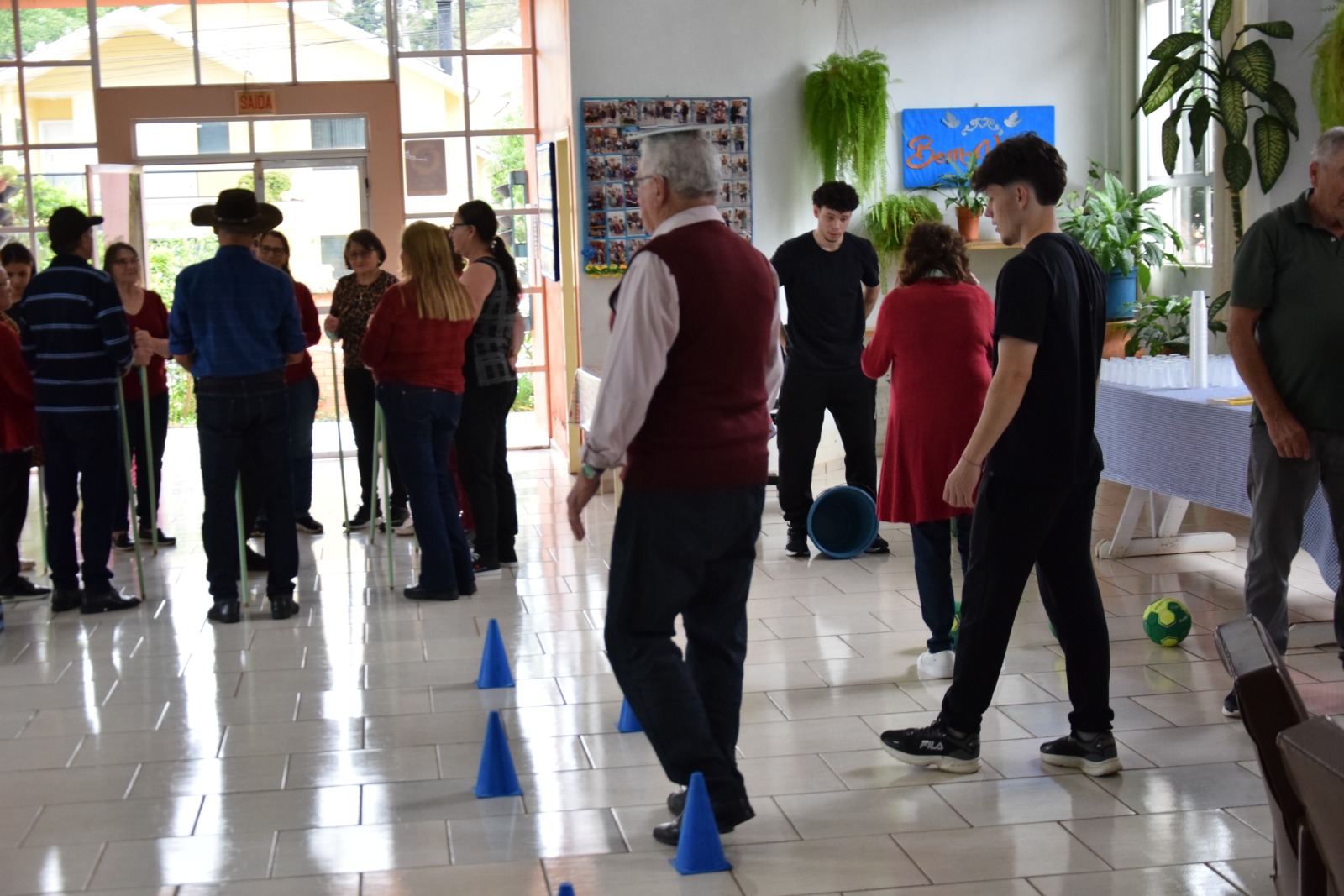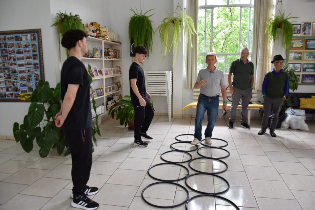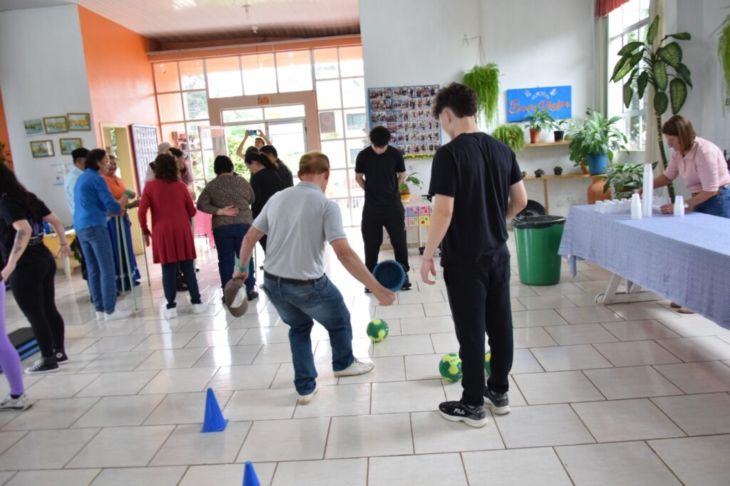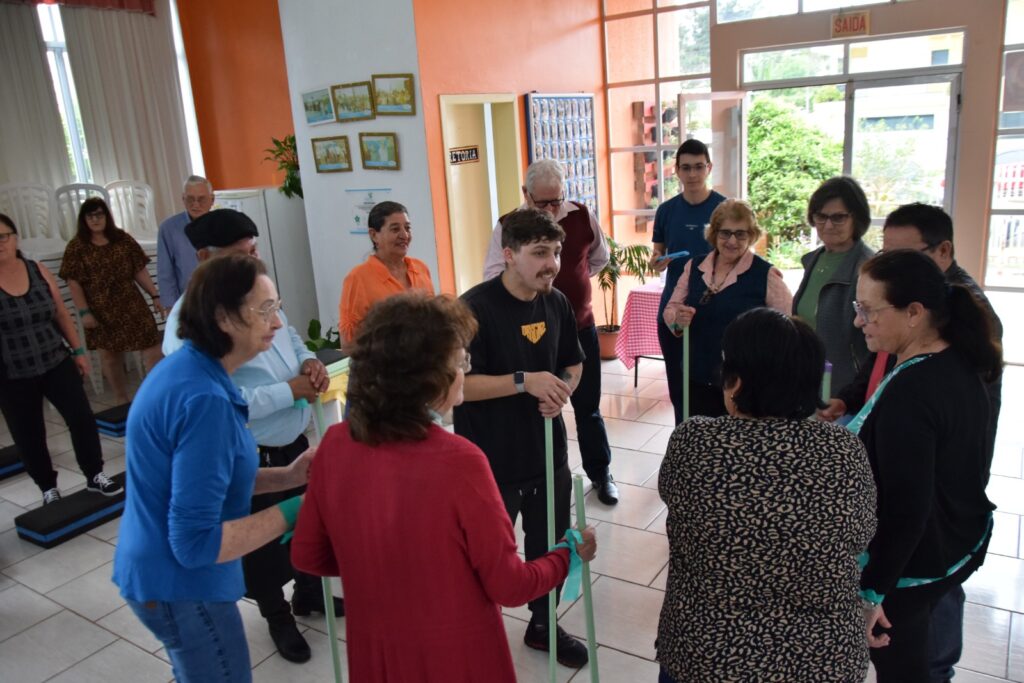 Cerca de 30 estudantes matriculados no componente de “Prática Profissional e Inserção Comunitária”, ministrado pela professora Angelica Madella, conduziram atividades físicas, exercícios de memória e dinâmicas de convivência, envolvendo os participantes em momentos de descontração e aprendizado.