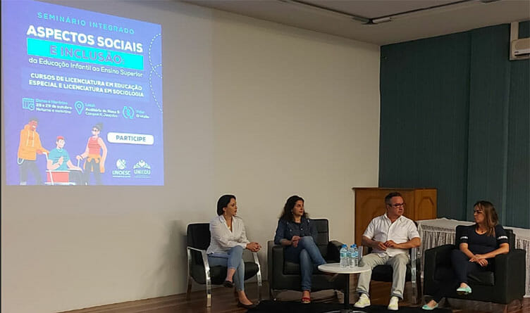 Nos dias 28 e 29 de outubro, os cursos de Licenciatura em Educação Especial e Licenciatura em Sociologia, da Unoesc Joaçaba, promoveram o “Seminário Integrado Aspectos Sociais e Inclusão: da Educação Infantil ao Ensino Superior”. As atividades aconteceram no Auditório da Saúde, localizado no campus 2.