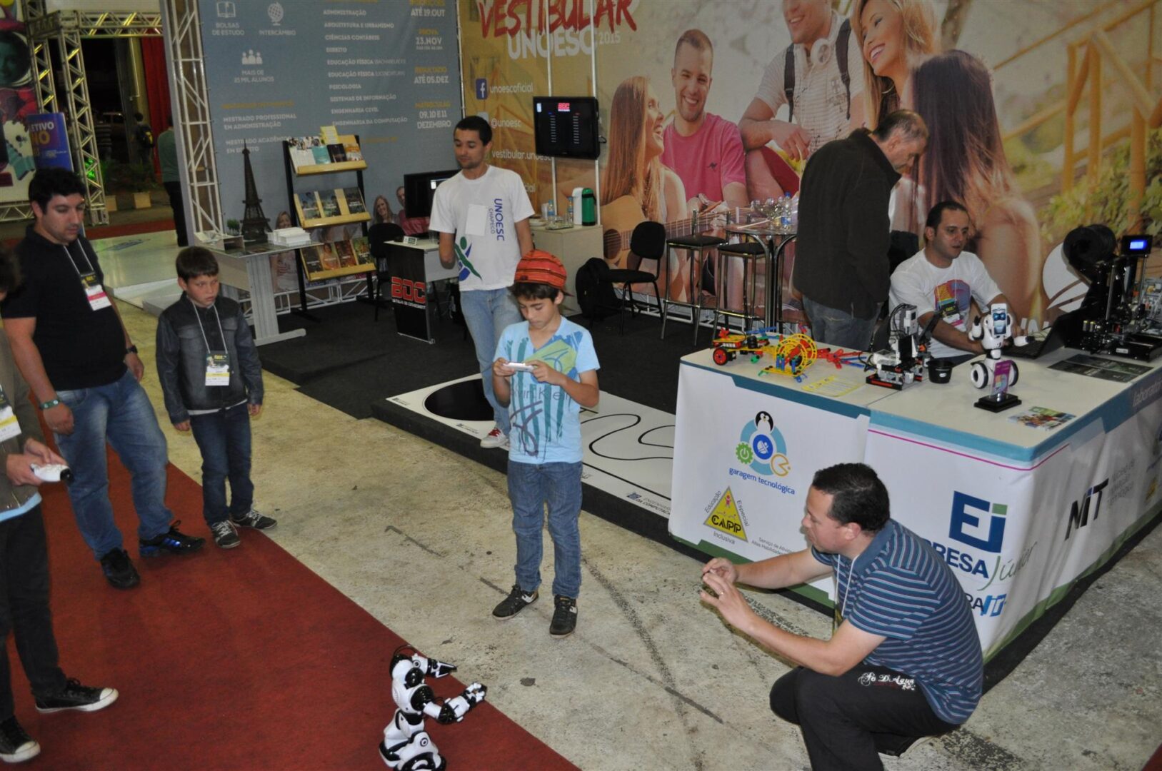Os projetos de robótica chamaram a atenção inclusive das crianças, embora sejam levados muito a sério pelos professores e estudantes do ramo.