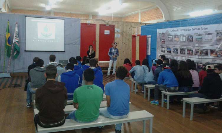 Os acadêmicos Marco Antonio Bettu Kunze e Regiane Corrêa, do curso de Engenharia Sanitária e Ambiental da Unoesc Videira, realizaram palestra sobre Desenvolvimento Sustentável para alunos da Escola de Educação Básica Santos Anjos, do município de Rio das Antas. O papel do Engenheiro na Sociedade, também fez parte da ação desenvolvida na primeira semana de maio por meio do projeto Educação Ambiental com a Engenharia.