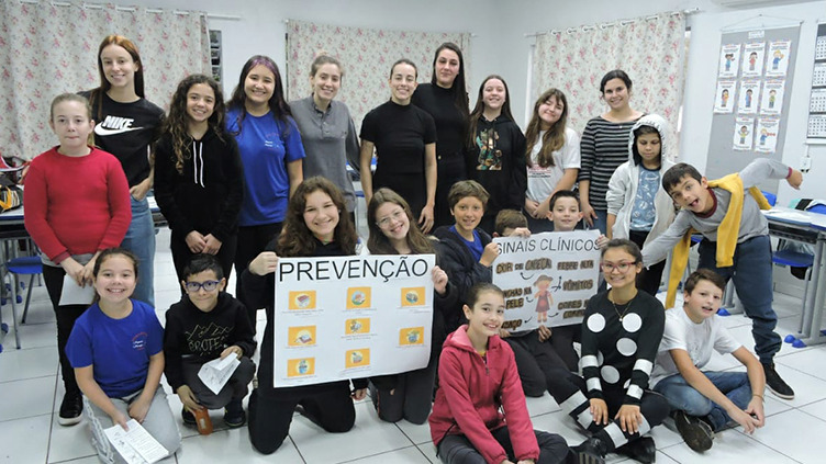 Para abordar sobre a dengue, os estudantes de Medicina Veterinária elaboraram cartazes, palavras cruzadas e uma paródia para interagir com os alunos, além de uma fantasia do mosquito da dengue. Já a leptospirose foi abordada por meio de fôlder e um jogo de tabuleiro para interagir com as crianças.