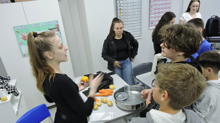 Para a conscientização acerca da importância da higiene de mãos, os alunos observaram, por meio de microscópios, as bactérias provenientes das próprias mãos. Além disso, utilizando tinta, relembraram a correta lavagem das mãos e, ainda, a correta higiene de alimentos.