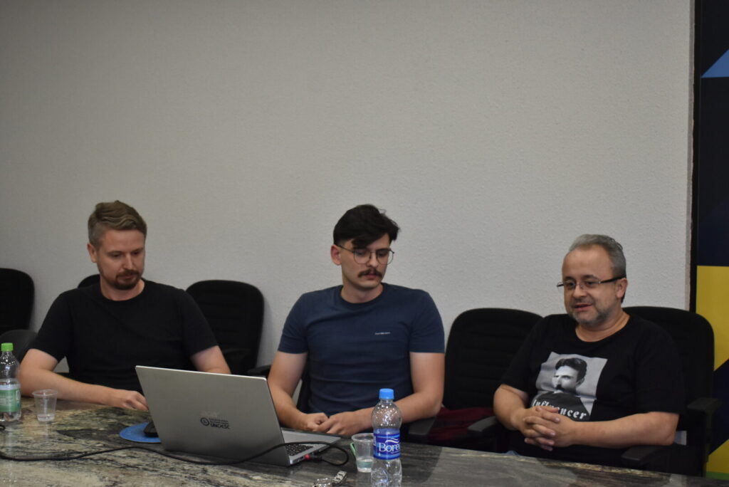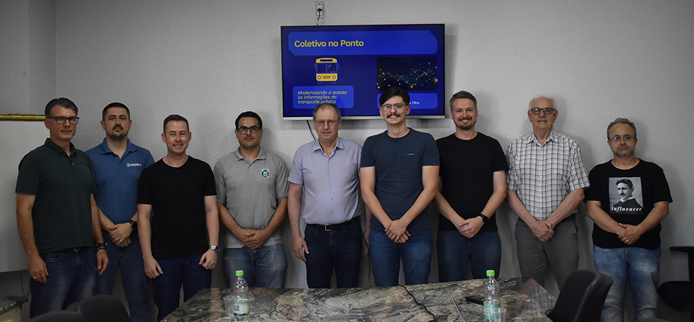 O estudante Darci Ronei Roesler Filho, do curso de Engenharia de Computação, apresentou na quinta-feira (4), ao lado dos professores Kleyton Hoffmann e Marconi Januário, o aplicativo “Coletivo no Ponto” para o vice-prefeito Jorge Dresch, para o diretor de Trânsito, Wilton Werner Zukowski, e para representantes do setor de mobilidade de Joaçaba. A iniciativa, desenvolvida como Trabalho de Conclusão de Curso (TCC), busca aprimorar o acesso às informações do transporte coletivo. Com o aplicativo, os usuários de transporte coletivo teriam a opção de acompanhar as rotas dos ônibus em tempo real, saber os itinerários e enviar reclamações/sugestões à administração.