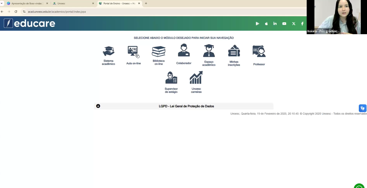 Os estudantes que escolheram a Unoesc para realizar um curso de especialização on-line participaram, na noite de 19 de fevereiro, de um encontro virtual de boas-vindas. A atividade contou com a participação do pró-reitor de Pesquisa, Pós-graduação, Extensão e Inovação da Unoesc, professor Kurt Schneider, da equipe da Unoesc Virtual e dos tutores.