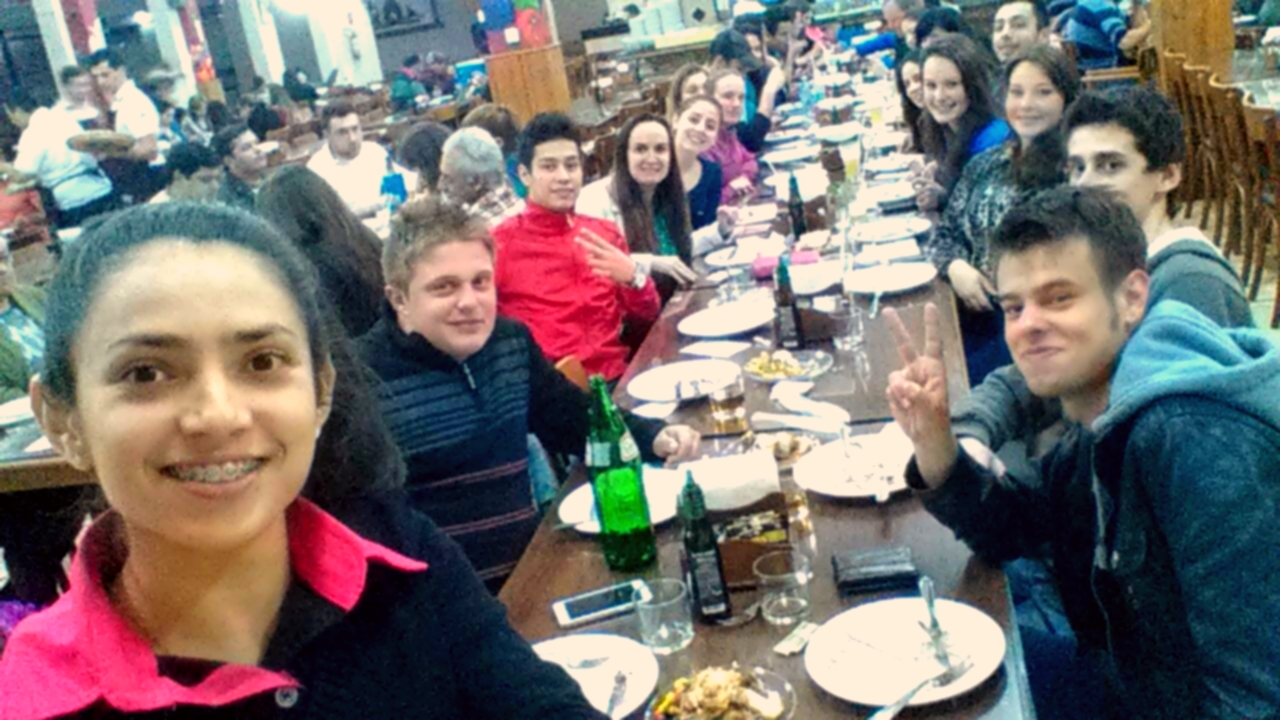 Eles foram a uma pizzaria e deveriam se comunicar, entre eles, com a professora e com os atendentes, apenas por meio da Língua Brasileira de Sinais (LIBRAS).