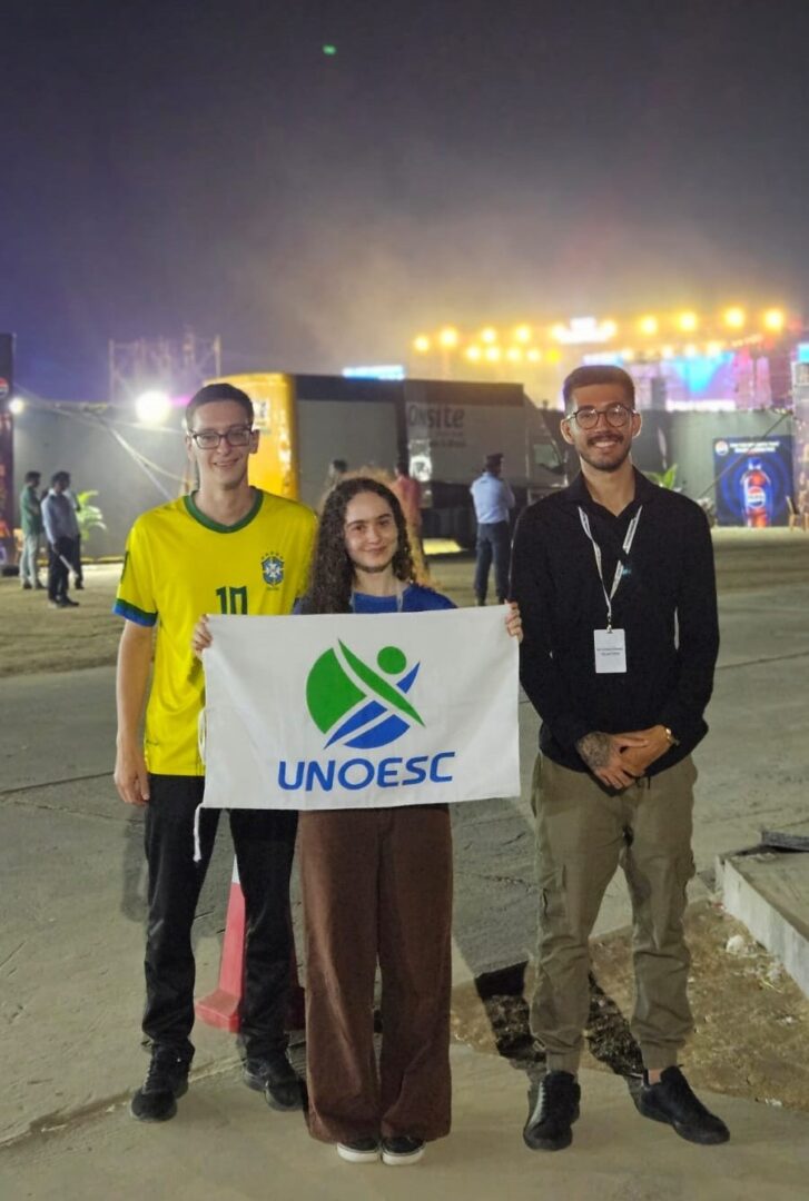 Entre os dias 15 e 22 de fevereiro, três estudantes da Área de Ciências Exatas e Tecnológicas da Unoesc representaram a Instituição no “Vibrance 2026”, festival cultural e esportivo promovido pelo Vellore Institute of Technology (VIT), na Índia. O evento, realizado no campus do VIT, reuniu pessoas de diversas nacionalidades em uma programação que integrou cultura, inovação, esportes e intercâmbio acadêmico.
