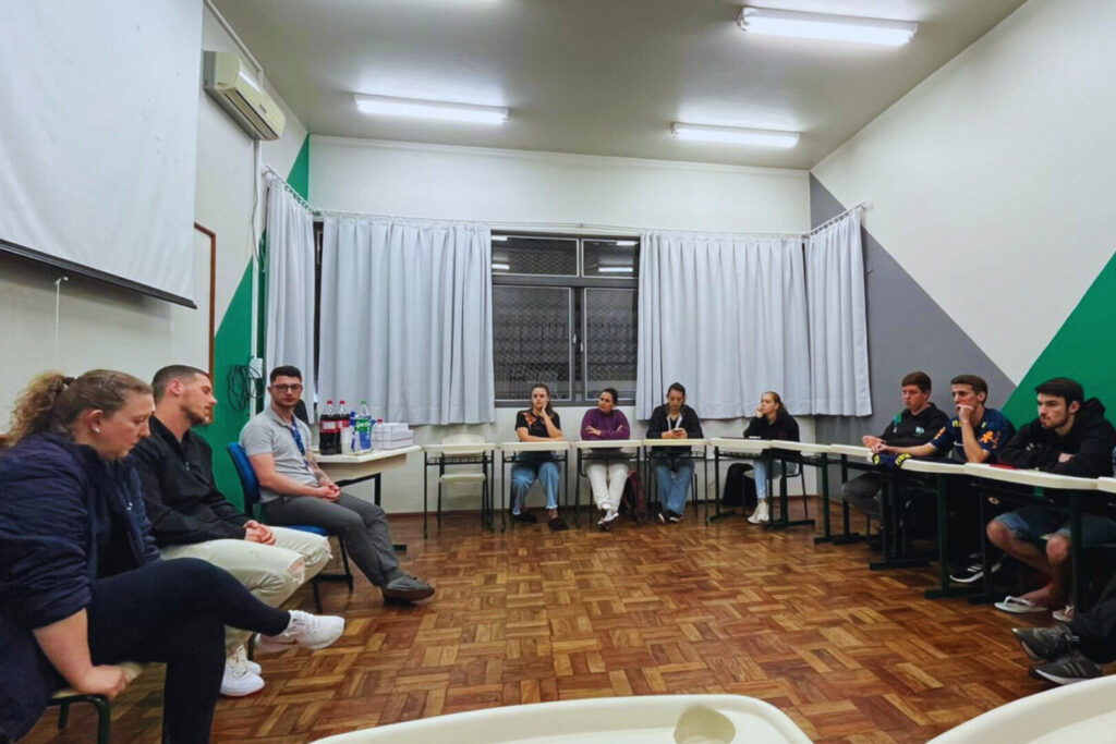 Acadêmicos da 5ª fase do curso de Licenciatura em Educação Física da Unoesc São Miguel do Oeste participaram de uma roda de conversa com os professores Leonardo Bucgs e Mircéia Sevald, da Associação de Pais e Amigos dos Excepcionais (APAE). A atividade foi mediada pelo professor Josiano Guilherme Puhle, na disciplina de Práticas da Educação Física Inclusiva, e abordou o papel da Educação Física no desenvolvimento de pessoas com deficiência, além das oportunidades profissionais e o reconhecimento da área.