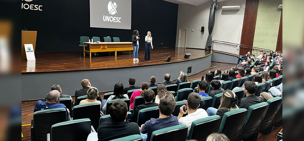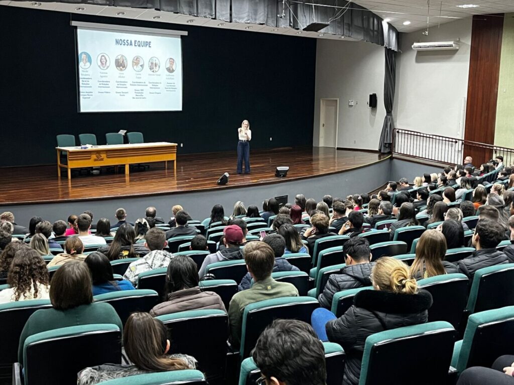 A Unoesc Xanxerê promoveu, no dia 9 de setembro, uma palestra voltada à internacionalização acadêmica. O encontro, realizado no anfiteatro do campus, reuniu estudantes das fases iniciais de todos os cursos do período noturno e teve como objetivo apresentar as oportunidades que a Instituição oferece para experiências no exterior.