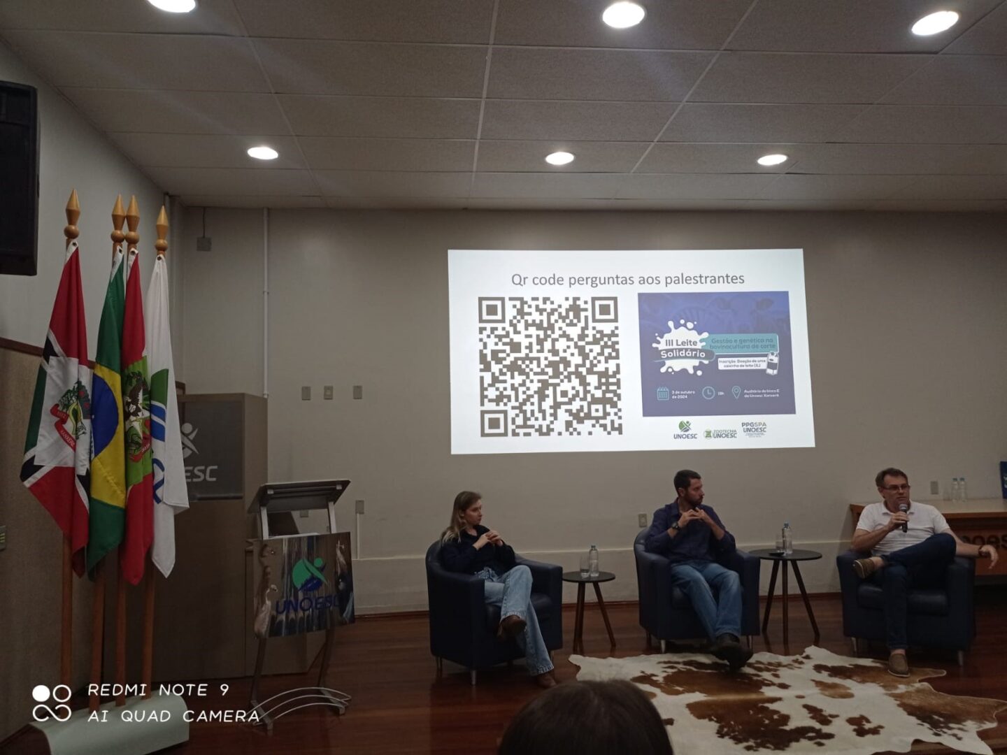 No dia 3 de outubro, estudantes e professores do curso de Zootecnia da Unoesc Xanxerê realizaram a terceira edição do “Leite Solidário”, um evento que visa fortalecer a interação entre a Universidade e a comunidade local, com foco em palestras técnicas relacionadas à produção animal.