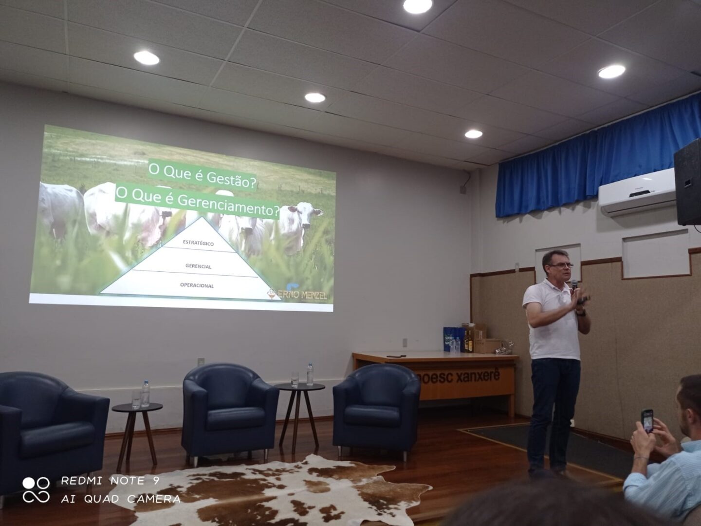 Nessa edição, o tema central foi “Gestão e genética na bovinocultura de corte”. As palestras foram conduzidas pelos professores Diego Cucco e Erno Menzel. O professor Diego, pesquisador da Universidade do Estado de Santa Catarina (Udesc Chapecó), abordou a “Qualidade de carcaça e o melhoramento genético: como obter melhores resultados”. Já o professor Erno, especialista em treinamentos de gestão e liderança para empresas e profissionais no Brasil, falou sobre a “Gestão estratégica na bovinocultura de corte”.