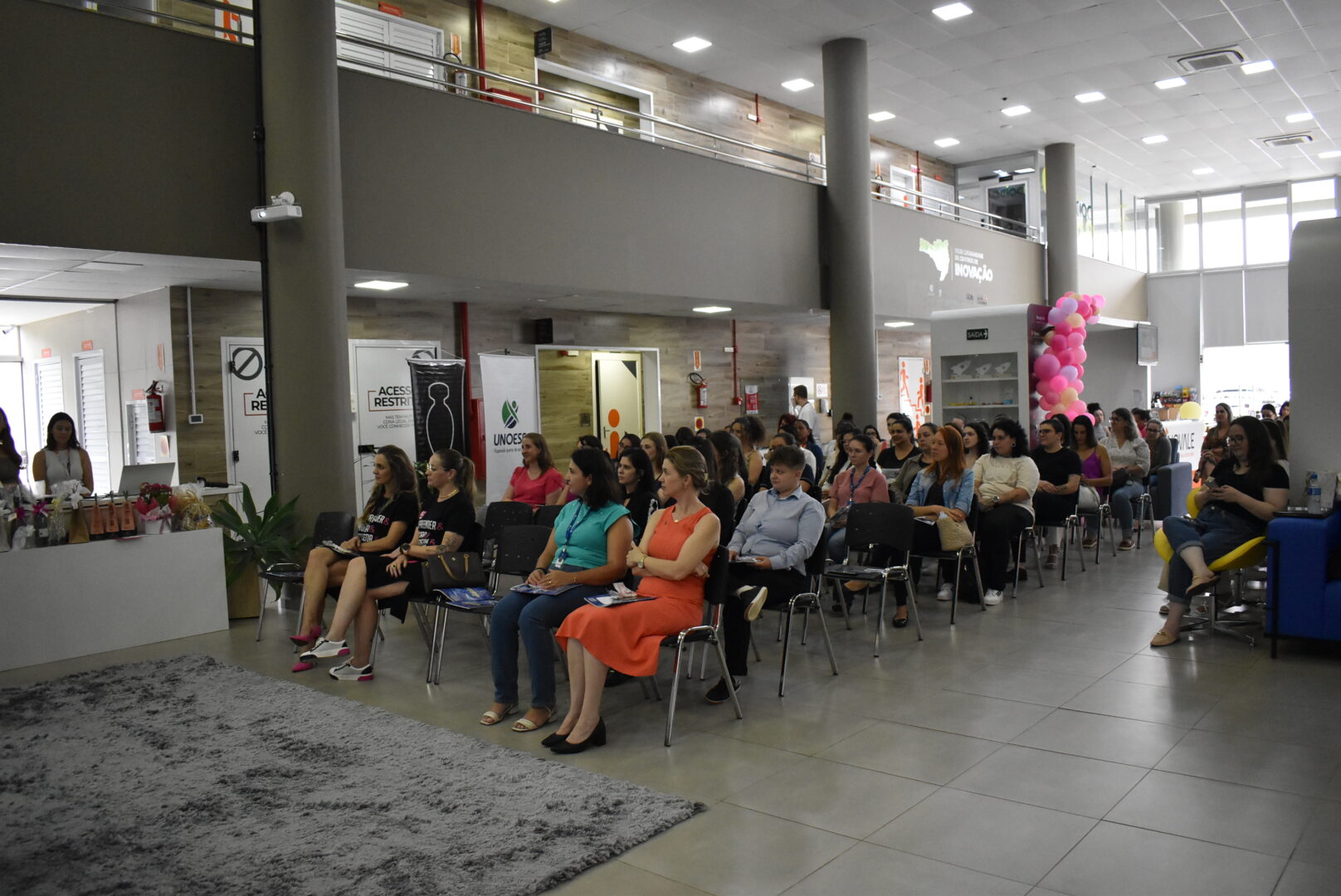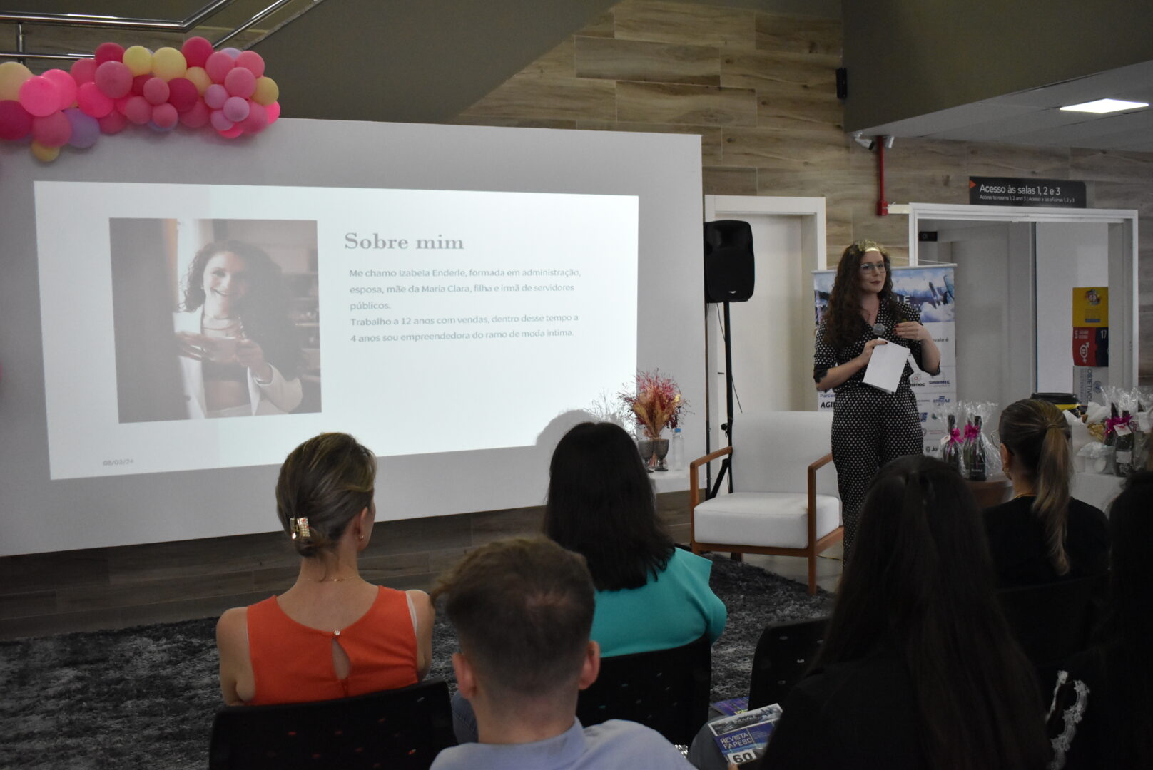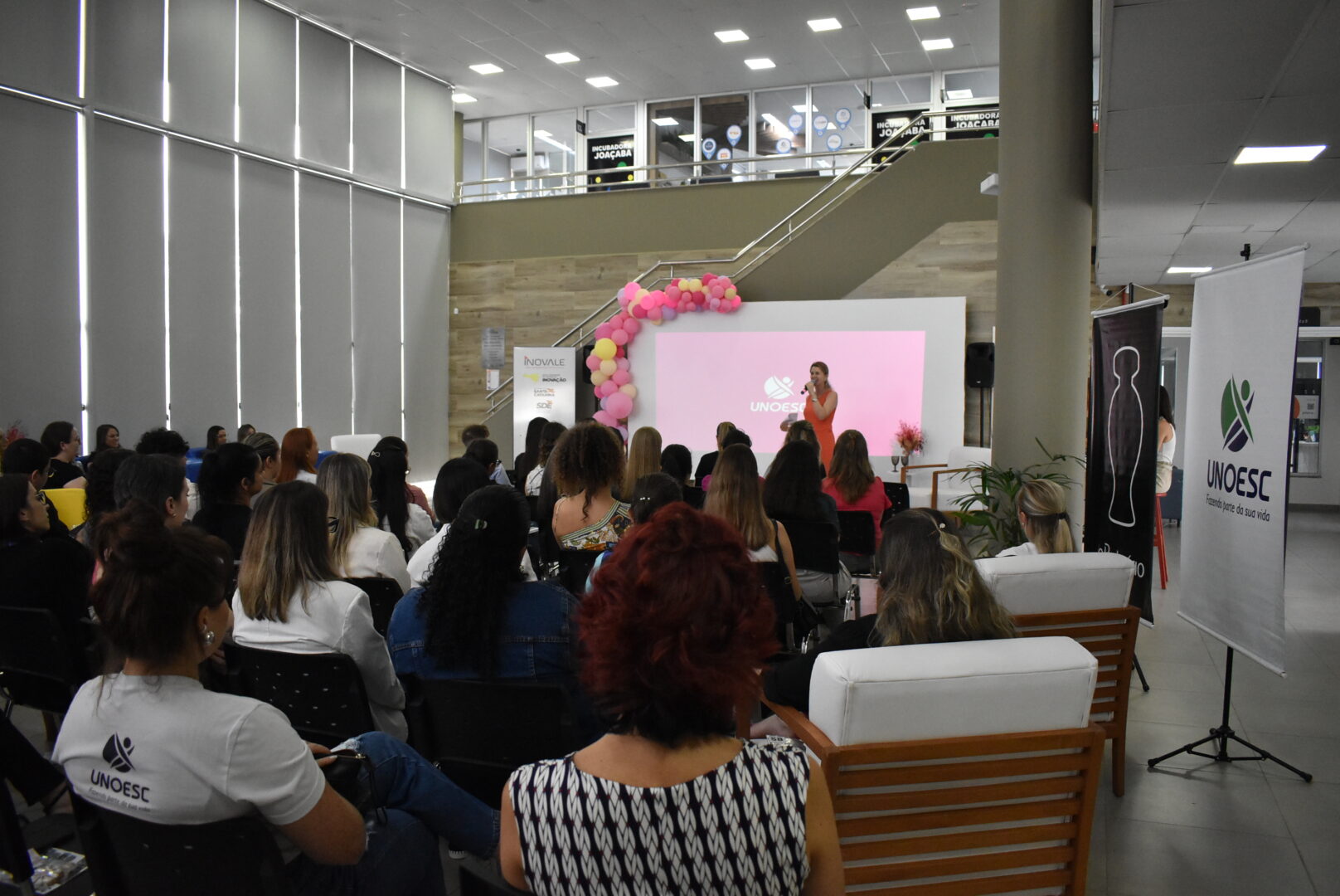 Ao final da palestra foram sorteados brindes e houve um momento de descontração durante um coffee break servido no local. O evento foi realizado pelo setor de Recursos Humanos (RH) da Unoesc, em parceria com o Polo Inovale, Sebrae, O Boticário, Maria Bella e Chá Patamar.