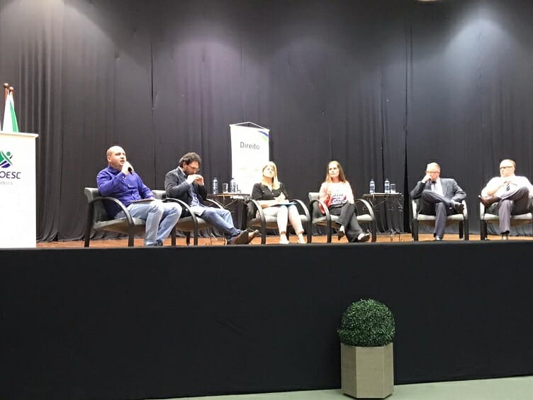 A mesa redonda foi composta pelo prof. Me. Marco André Serighelli, mediador dos trabalhos, Marcos Rohling, doutor em Educação, Neiva Furlin, doutora em Sociologia, Fernanda Zanotti, doutoranda em Saúde Pública, Prof. Ricardo Emilio Zart, mestre em Ciência Jurídica e Prof. Roberto Olinger. especialista em Direito Penal e Processual Penal.