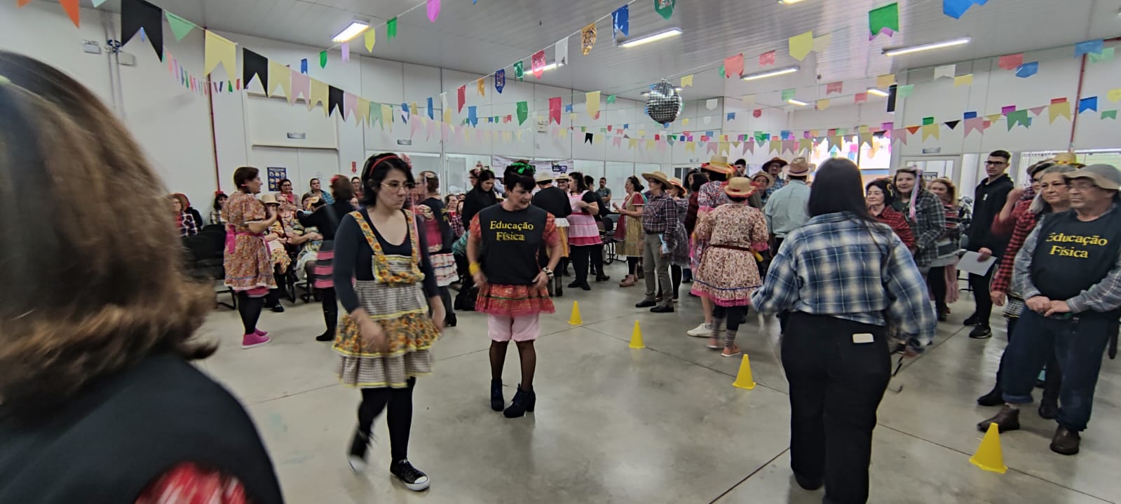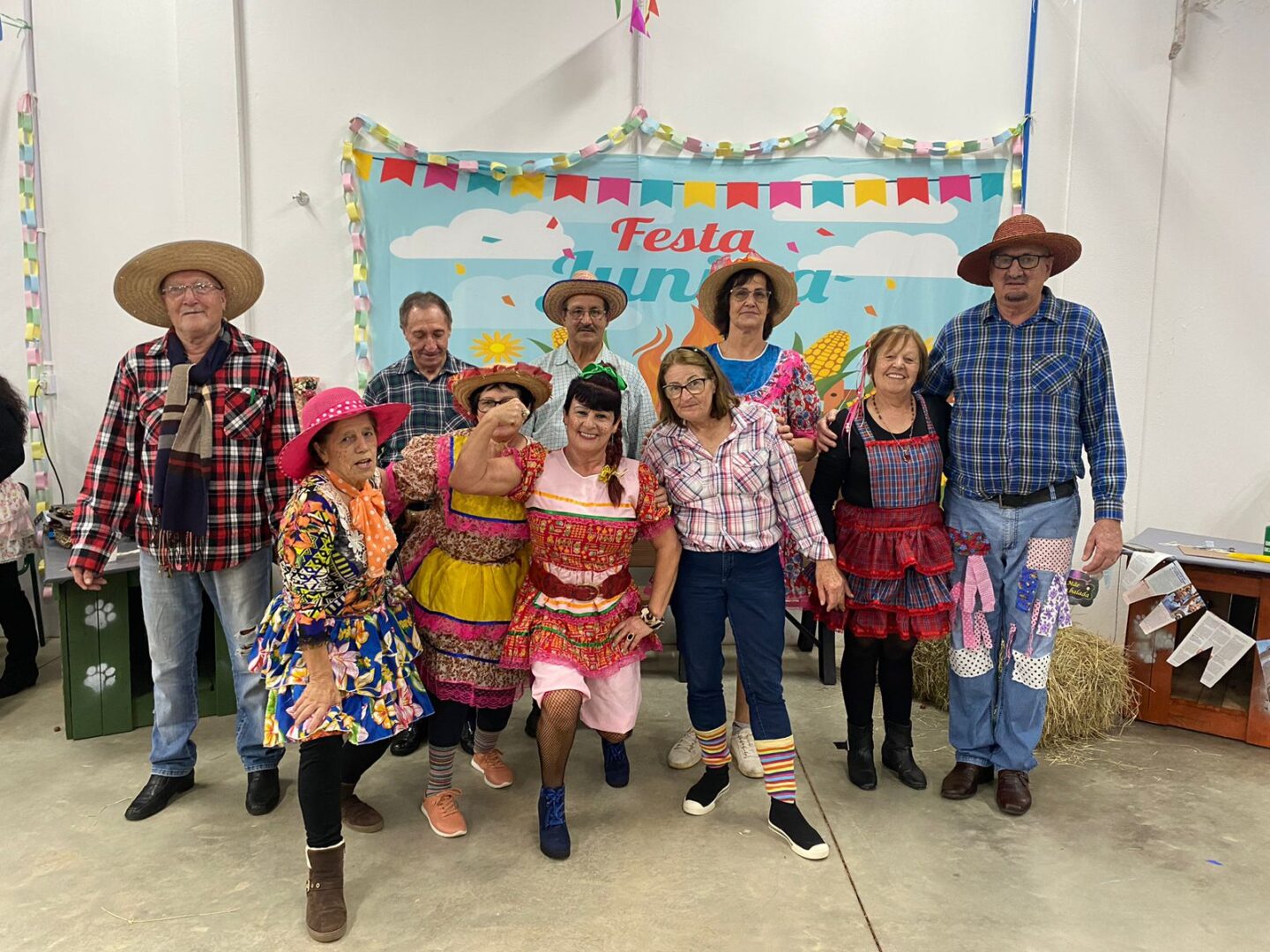 No dia 19 de junho, os participantes do curso de extensão Universidade da Melhor Idade de Xanxerê (Umix) e do projeto Musculação na Melhor Idade da Academia da Unoesc Xanxerê se reuniram para celebrar a “Festa Junina da Melhor Idade”, um evento que combinou diversão, cultura e solidariedade.