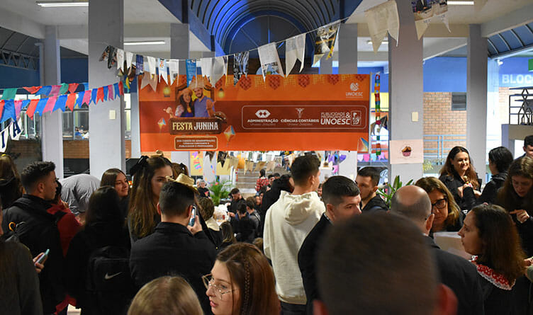 Na noite de 21 de junho o clima de São João tomou conta do Centro de Convivência, localizado no Campus 1 da Unoesc Joaçaba. No local, os cursos de Administração, Publicidade e Propaganda e Ciências Contábeis realizaram uma festa junina. No entanto, mais do que confraternizar de forma típica, como é comum neste mês de junho, e comemorar os 25 anos do Curso de Publicidade que está de aniversário neste mês, os acadêmicos tiveram que colocar em prática os conhecimentos obtidos na sala de aula e interagir com outros cursos da universidade.